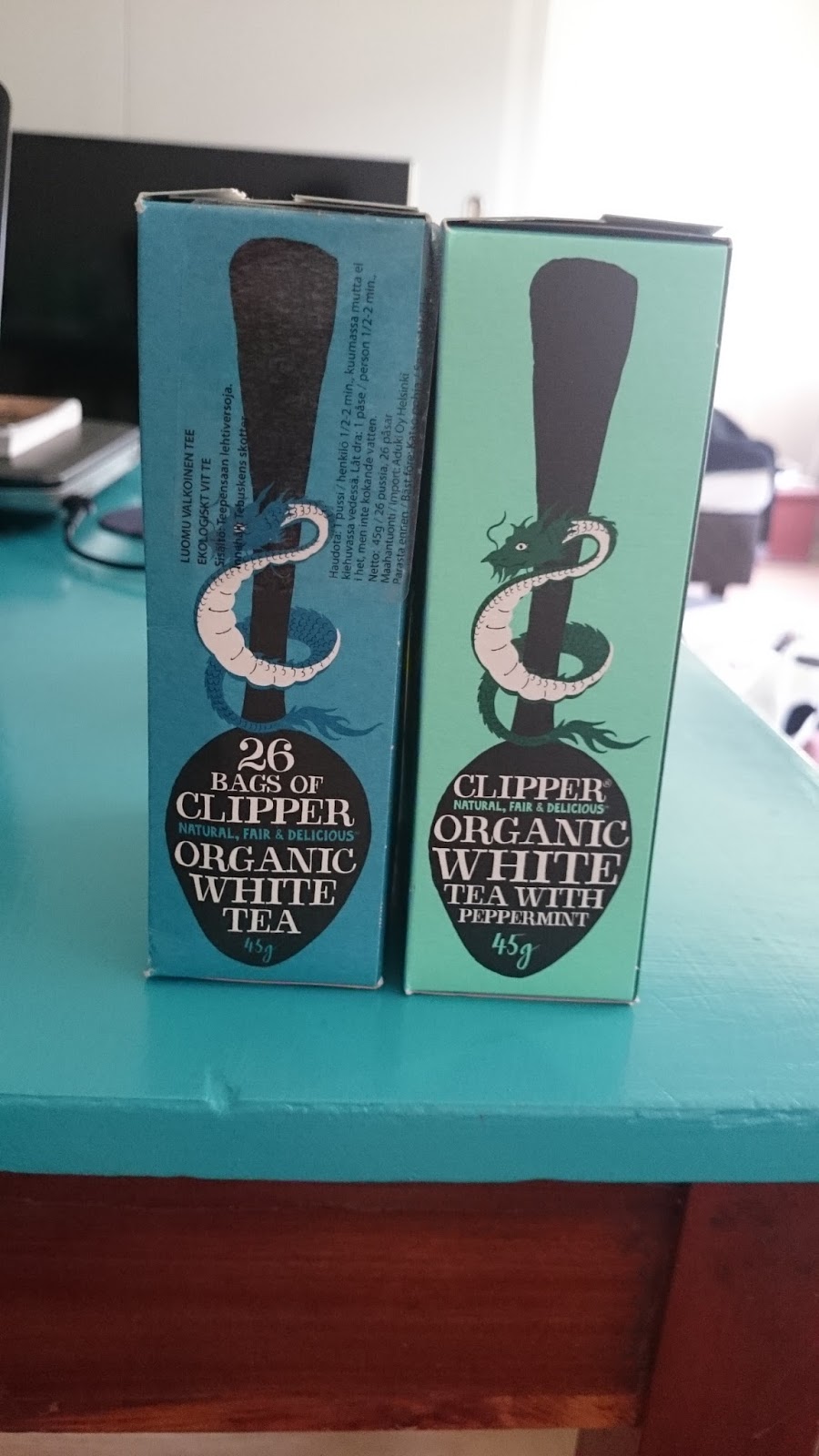 Pikaisesti katsottuna kaapista löytyi luomuna teetä, kahvia, tomaattimurskaa, kaurahiutaleita ja vehnäjauhoja.